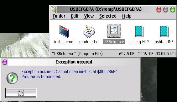 Pete (07 Jan, 2007 03:00): Hi I was very interested to read that USBcfg will not start and produces an error message "Cannot open ini-file..."