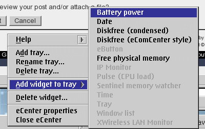 last updated at 31 Jan, 2005 02:02 (2 times) Is your xwlan.dll in : c:\ecs\system\ewps\plugins\xcenter directory ?? That would normally do the trick to add this widget to the ecenter. |