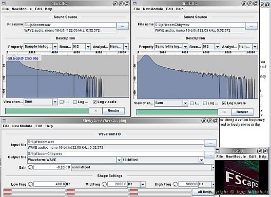 I have added a new program to my Java site today. Its about sound and its called FScape. Its a stand alone program with lots of possibilities for manipulating sound files. I have tried some, but not all.See for yourself, you can find the program on my English page http://joopn.home.xs4all.nl/os2ecs/ecs6e146.htm and in Dutch http://joopn.home.xs4all.nl/os2ecs/ecs6n146.htm. However the internet page is also in Dutch, the program is not and speaks only English.