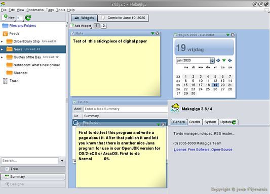 I have added a new program to my Java homepage, its not a game but some kind of PIM. Its called Makagiga and because of our version of Java we are walking far behind. But the latest version for our version of Java can still be downloaded and it works, almost all of it. There is not much to read on my page besides where to get the program and how to setup. You have to run it and then its this is for me or I don't like it. You can find my page here in English http://joopn.home.xs4all.nl/os2ecs/ecs6e159.htm  or in Dutch http://joopn.home.xs4all.nl/os2ecs/ecs6e159.htm.