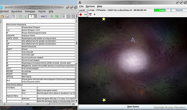 I have added a new game to my Java corner on my website. Its called Javoids and it is a space shooting game. Help works, even sound. You can read a little more on this page in English http://joopn.home.xs4all.nl/os2ecs/ecs6e171.htm and on this page in Dutch http://joopn.home.xs4all.nl/os2ecs/ecs6n171.htm.