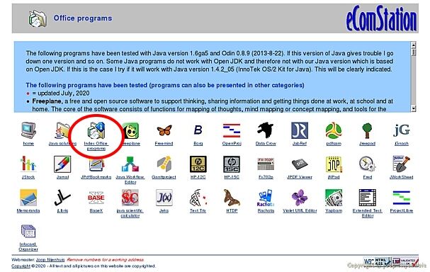 If you had visit my Java homepage then you could have seen that the "Office programs" corner had no room anymore for another program. I have solved that problem and now there is room for another 23 programs in "Office programs". That means 5 rows with icons and very little room for the blue frame with program names and what it does. Therefore I introduce a new icon with the text "Index Office programs". When you click on the text or the icon you get a full page with the index. See the picture, in the red circle the new icon.