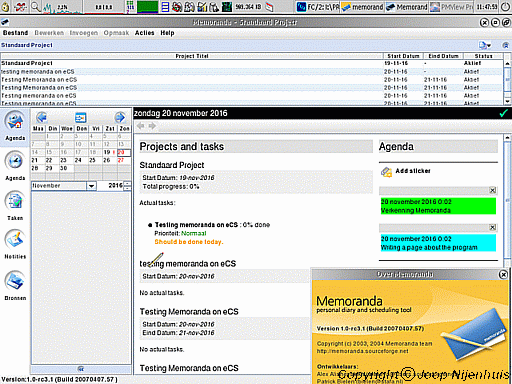 I have added a new program to the list of Java programs today. Its called Memoranda. Some kind of diary manager and personal project management tool. You can find it on my homepage http://joopn.home.xs4all.nl/os2ecs/ecs6e103.htm and the Dutch version http://joopn.home.xs4all.nl/os2ecs/ecs6n103.htm.
